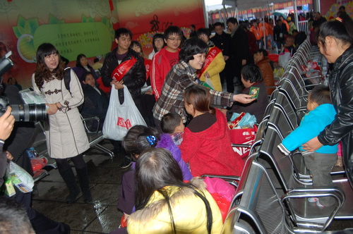 為了配合做好2012年春運工作,《羊城晚報》與廣藥集團共同在廣州火車站啟動了春運現場志愿者服務活動。元月15日上午,《羊城晚報》總編輯劉海陵等領導和白云山和黃中藥、潘高壽、王老吉、明興等企業領導等一行來到廣州火車站,針對車站工作人員在春運期間喊話多、休息少等狀況特別挑選了價值逾10萬元白云山板藍根、白云山涼茶、潘高壽潤喉糖、王老吉涼茶、清開靈膠囊等廣藥集團司屬產品。這些急需藥品、飲料,受到車站領導和工作人員的熱烈歡迎。